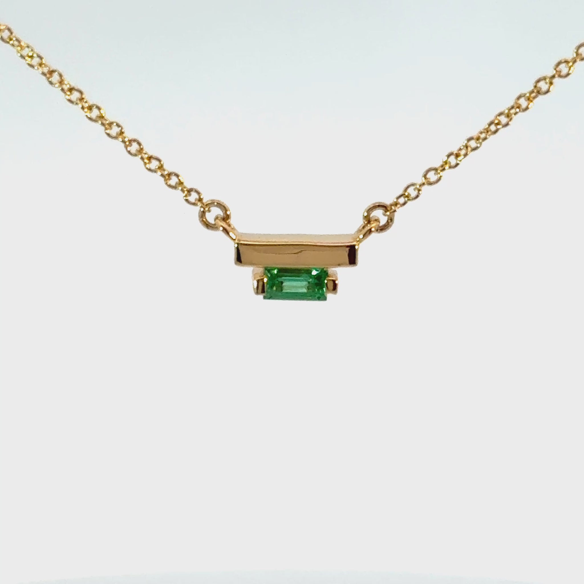 The Ladder Climber Necklace perfectly compliments our Ladder Climber earrings. 4x2mm emerald baguette suspended under a solid 18k recycled gold bar.
