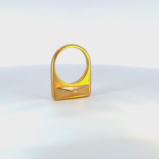 The What a Stud ring is a statement piece that stands on its own and demands respect! A high polished stud on each side nicely contrasts the remainder of the ring in brushed gold.
